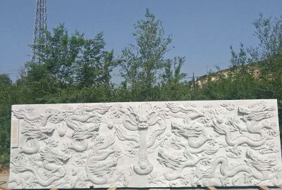 采用天然石材,手工雕刻九龍圖案,氣勢磅礴,寓意吉祥,適合庭院、院落影壁墻裝飾。